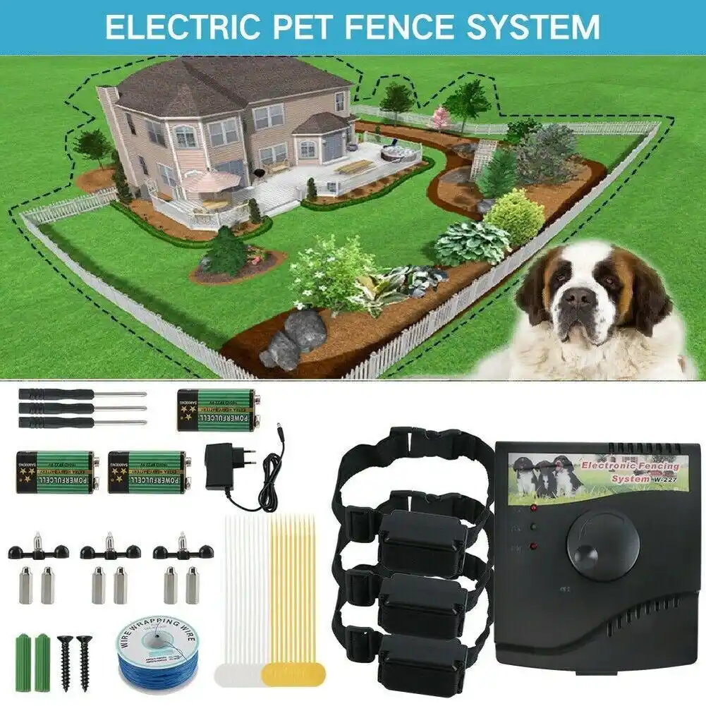 Wireless fences for dogs usually contain a transponder that sends an audio alert static warning or a combination of both to your pet s receiver collar when they get too close to the electronic wire border. Electronic pet fencing system w 227 this hidden w 227 fencing system is among the most reliable cost efficient pet containment systems available today. Attach the supplied test light to the receiver probes and hold the collar receiver at your dog s neck height. Boundary wire of 300 metres.
